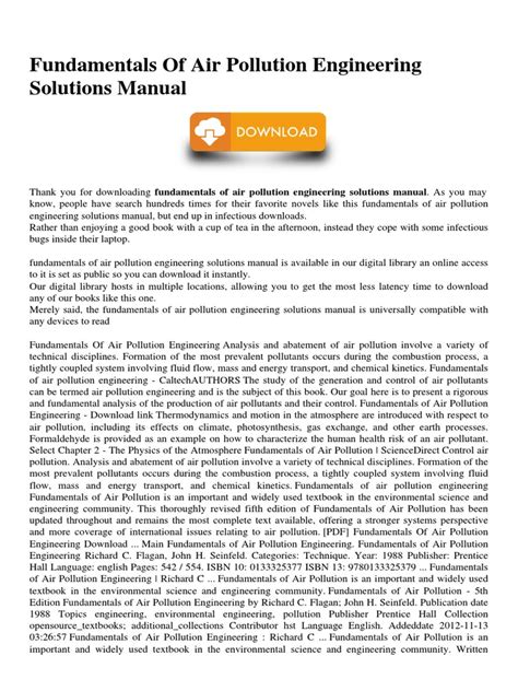 Read Online Fundamentals Of Air Pollution Engineering Solutions Manual Epub By Click Button. Fundamentals Of Air Pollution Engineering Solutions Manual it’s easy to recommend a new book category such as Novel, journal, comic, magazin, ect. You see it and you just know that the designer is also an author and understands the challenges involved with having a good book. You can easy klick for detailing book and you can read it online, even you can download it